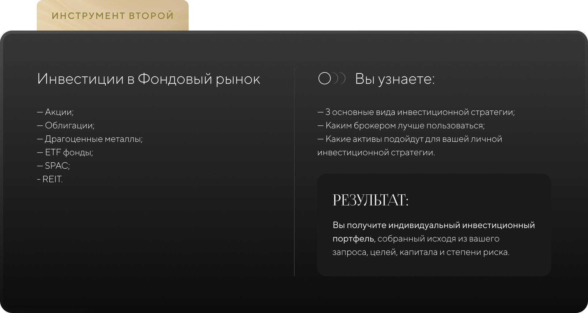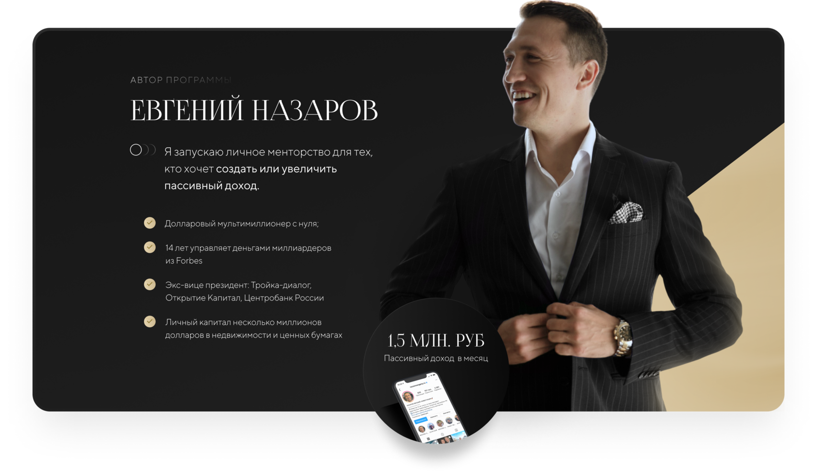 Цель менторства: разработка инвестиционной стратегии, исходя из вашего запроса, капитала, степени риска, личного опыта Евгения и его команды аналитиков